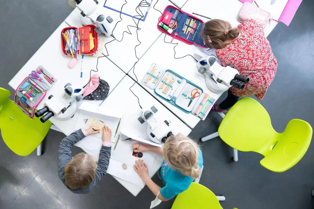 Eigenverantwortliches und selbstbestimmtes Lernen ist hier das Ziel: Schülerinnen der Universitätsschule Dresden beim Arbeiten an Mikroskopen.