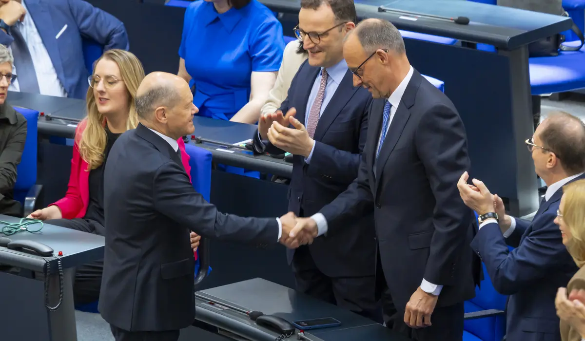 Entsetzen im Saal. Noch-Kanzler Olaf Scholz sitzt in der ersten Reihe seiner SPD-Fraktion. Auch ihm entgleiten die Gesichtszüge. Noch nie in der bundesdeutschen Geschichte hat ein Kanzler im ersten Wahlgang die nötige Mehrheit verfehlt. Die deutsche Demokratie schlittert in ungewisses Fahrwasser.