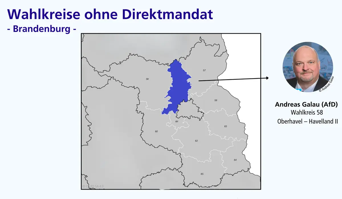 - Brandenburg: Andreas Galau (Wahlkreis 58 Oberhavel – Havelland II)